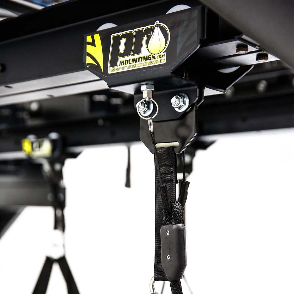 Introducing the Pro Mountings Spring Plunger Track Combo, a game-changing kit designed to cater to those with high ceilings who require a more convenient solution. Say goodbye to turning knobs to tighten or loosen your heavy bag mount. With our Spring Plunger Roller Mount track system, moving your heavy bag into usage and storage has never been easier. Simply pull the double braided nylon rope, and effortlessly slide the bag along our track.